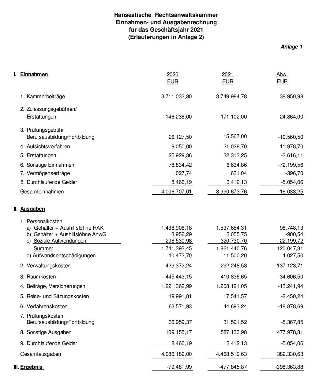 Anlage 1: Einnahmen- und Ausgabenrechnung für das Geschäftsjahr 2021