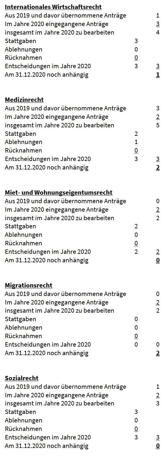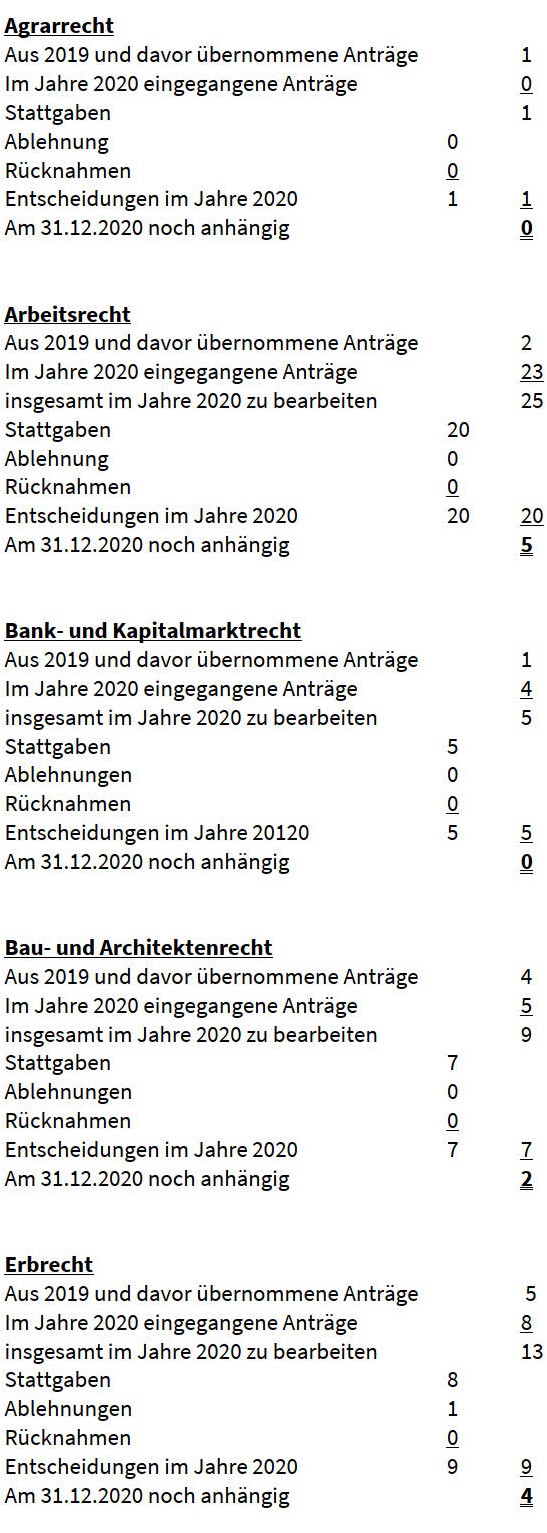 Im Berichtsjahr 2020 hat der Kammervorstand über Fachanwaltsanträge wie folgt entschieden: