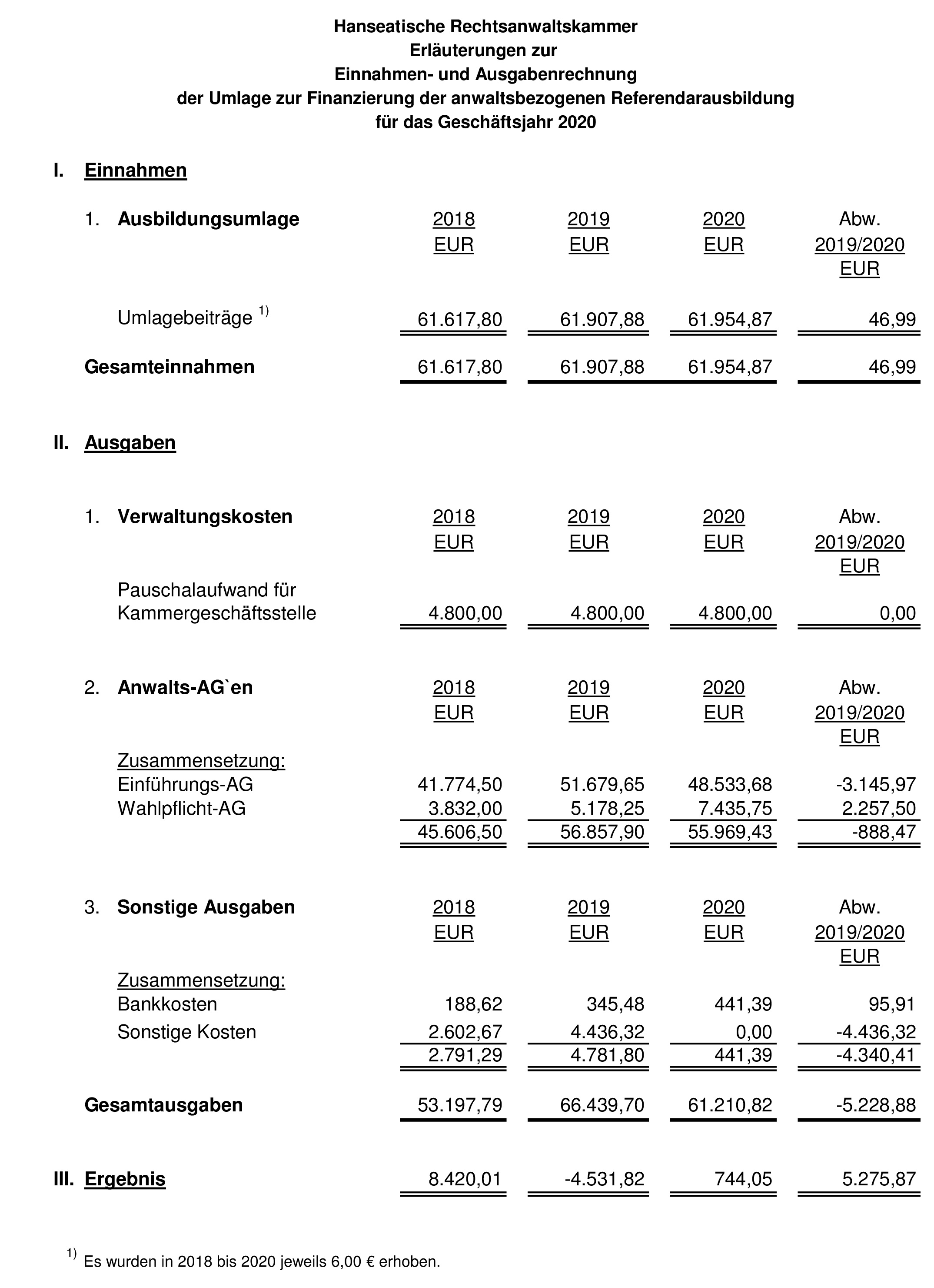 Anlage 6: Erläuterung zur Einnahmen- und Ausgabenrechnung der Umlage zur Finanzierung der anwaltsbezogenen Referendarausbildung