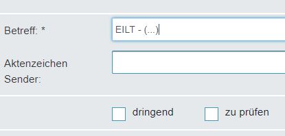 1. Eilt-Sachen sind bitte als solche zu kennzeichnen. Sie werden dann vordringlich bearbeitet. Die Kennzeichnung als EILT-Sache erfolgt, indem man in die Betreffzeile das Wort „EILT“ voranstellt. Wichtig: Ein Häkchen bei „dringend“ hat keinerlei Außenwirkung. Es wird nicht an die Justiz übertragen, sondern dient ausschließlich der rein postfachinternen Kennzeichnung für den Fall der arbeitsteiligen Bearbeitung.