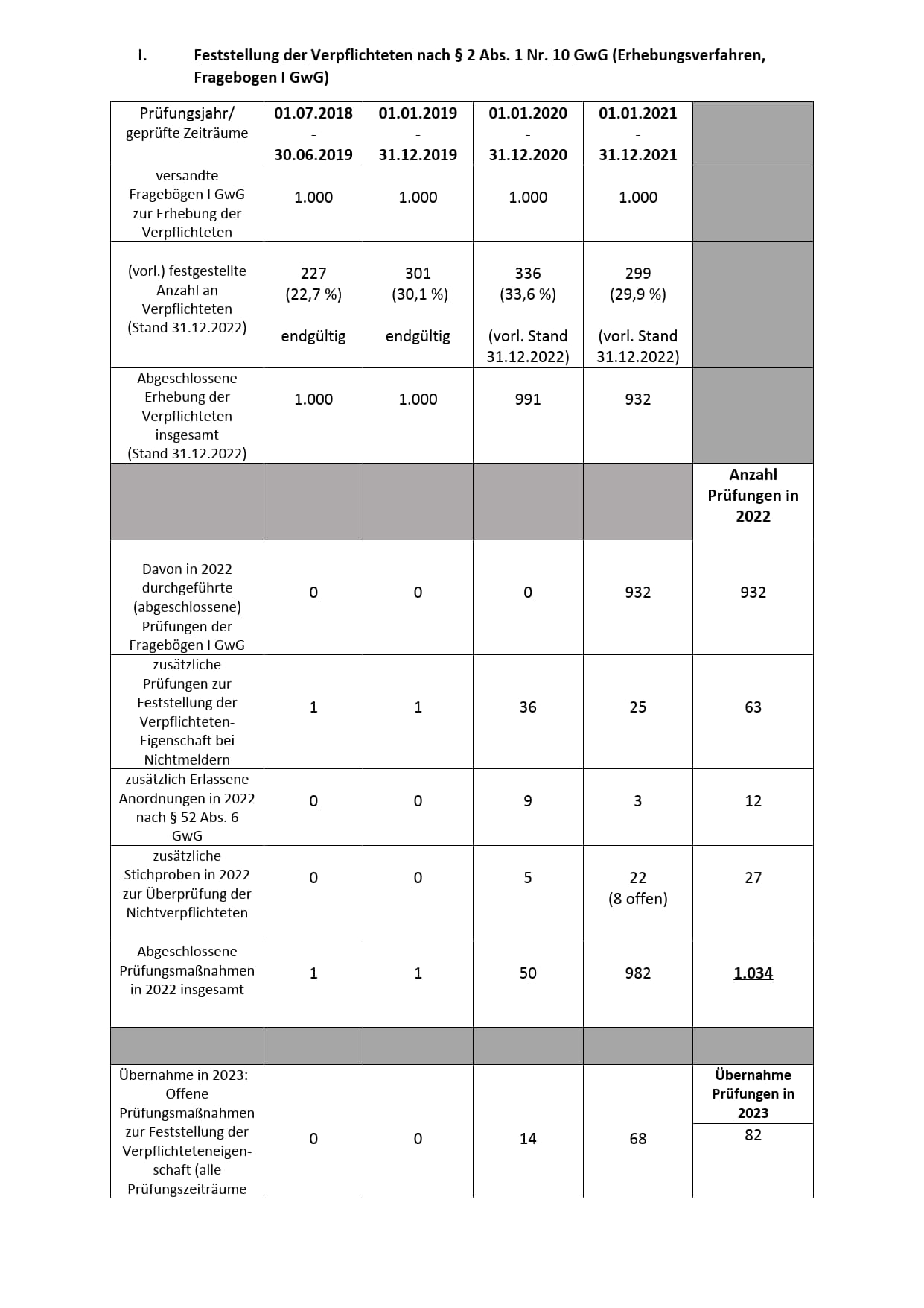 Die Geldwäscheaufsicht der Hanseatischen Rechtsanwaltskammer lässt sich für 2022 wie folgt statistisch darstellen: