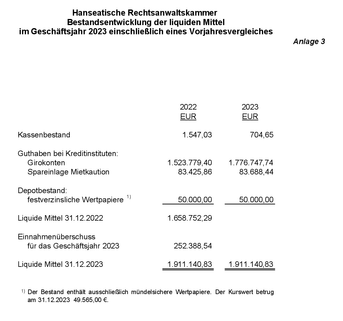 Anlage 3: Bestandsentwicklung der liquiden Mittel im Geschäftsjahr 2023