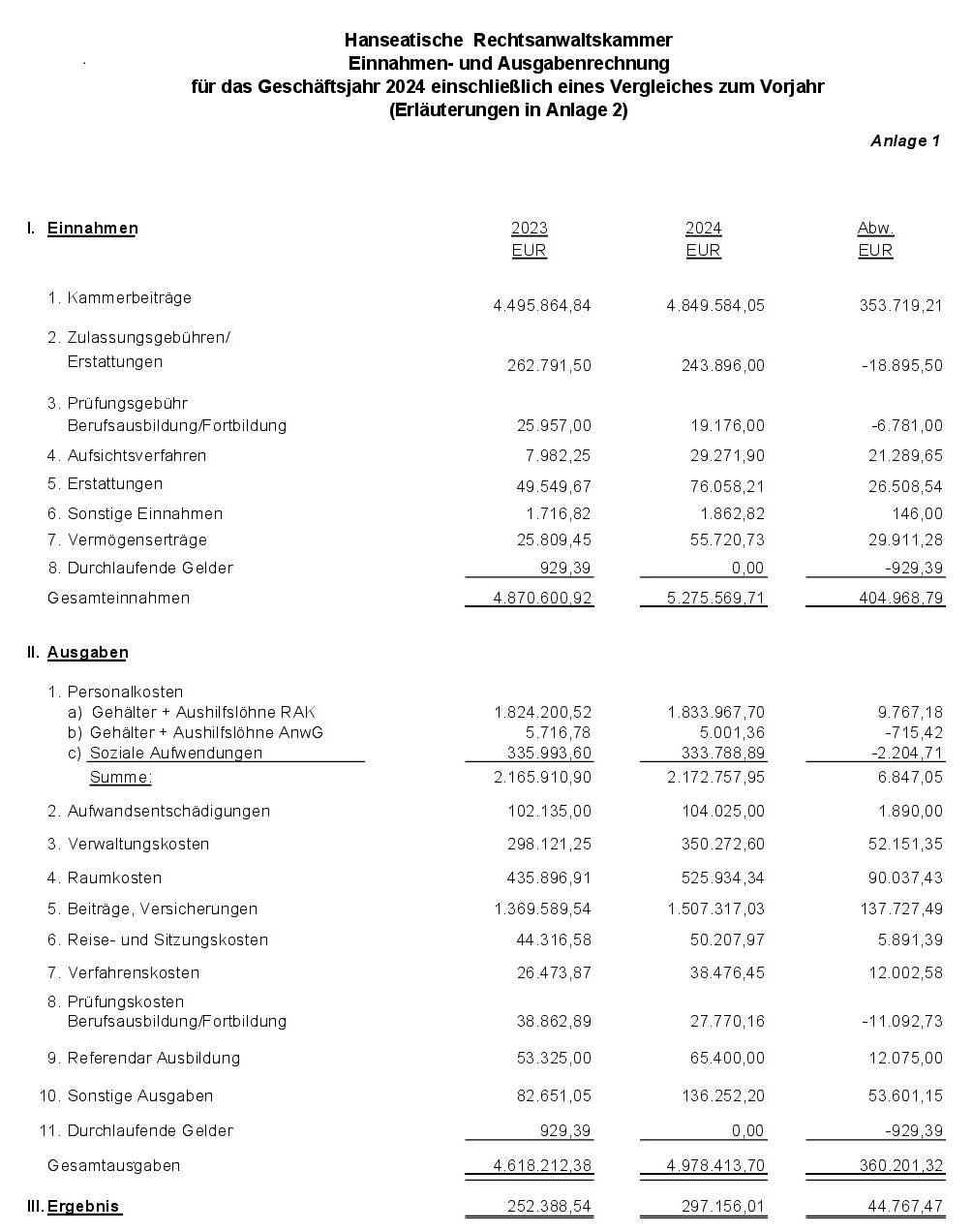 Anlage 1: Einnahmen- und Ausgabenrechnung für das Geschäftsjahr 2024