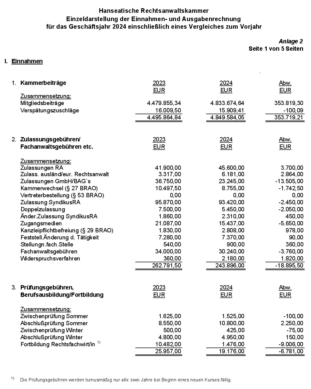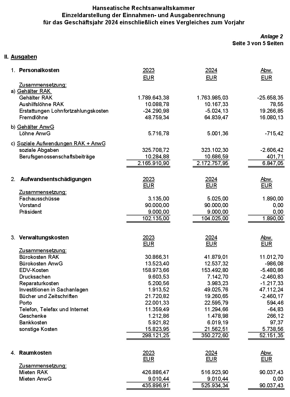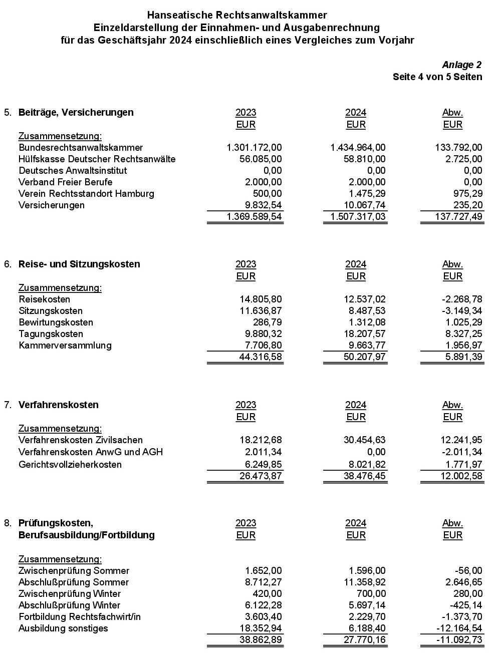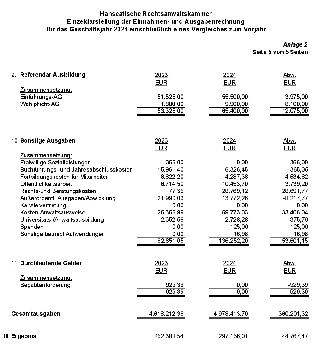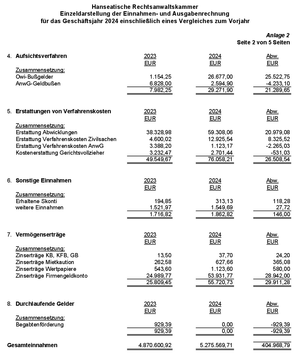 Anlage 2: Einzeldarstellung der Einnahmen- und Ausgabenrechnung für das Geschäftsjahr 2024